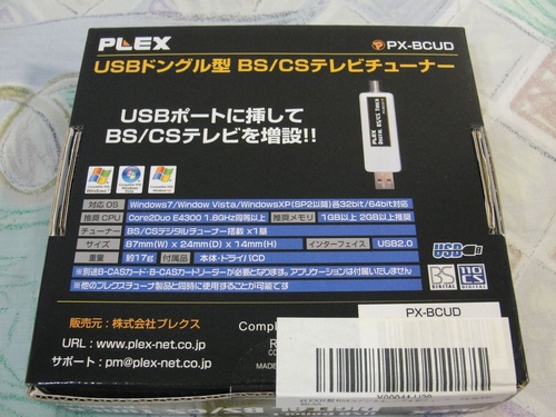 [開箱] PLEX_PX-BCUD 日本BS/CS_USB衛星電視棒 作者: zx 發佈日期: 2012 年 8 月 11 日 衛星接收機也用了一陣子 想說開始用BS PC 來看日本BS/CS衛星 最後請MyAV論壇的于社長幫忙從日本代購 差不多3.4天就收到了.. 至於這東西要怎使用..就要各憑本事了因為原廠是沒有附播放軟體 內容物很簡單..只有本體.延長線.驅動.說明 最近購買要擴充的東西…. 分類:衛星相關
